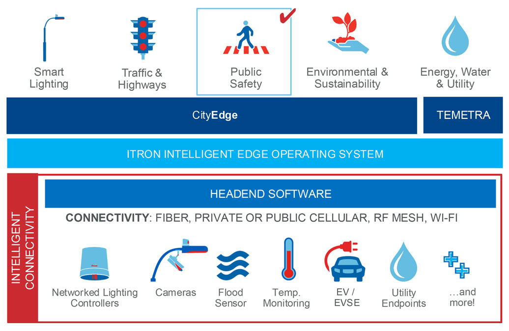 Itron CityEdge’s architecture revolutionizes public safety by seamlessly blending real-time data, sophisticated analytics and adaptive systems. This powerful combination enhances emergency response, streamlines traffic flow and boosts overall city security, creating a more resilient and responsive urban environment.